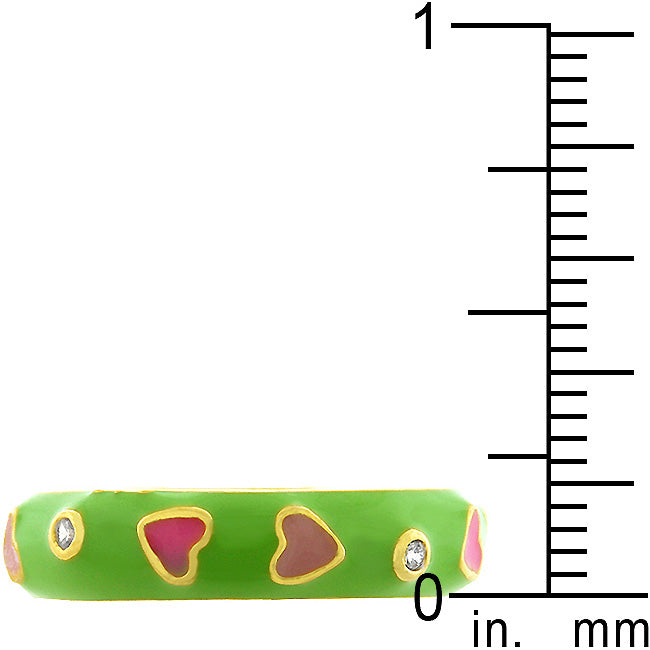 The Tropical Enamel Hearts Ring is complete with green apple overlay that looks so cute especially with pink hearts and cubic zirconia decorations. 18k plated gold is achieved using an electroplating process that coats the item with heavy layers of 18k Yellow Gold and color-treated to display a perfect 14k Hamilton gold color.