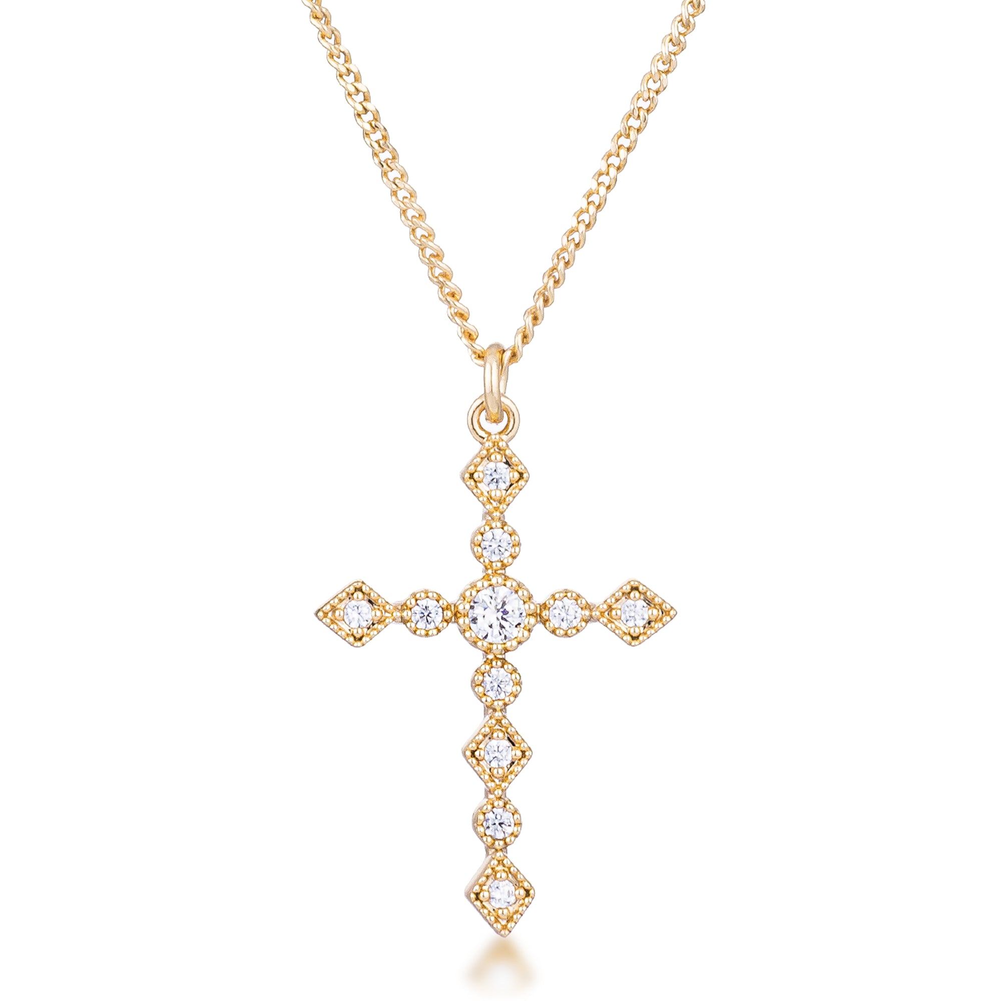 Dainty Art Deco Gold Plated Clear CZ Cross Pendant